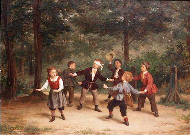 Aggiungo, in allegato così come nel titolo, alcune immagini che hanno catturato la mia attenzione. Numerosi artisti hanno rappresentato nei loro dipinti, nei loro disegni, nelle loro opere, il gioco di mosca cieca. Alcuni sono intrisi di significato, di emozioni, di espressioni che mostrano quanto il gioco sia davvero un'attività seria, che permette di vivere e divertirsi, e rendono evidente l'attenzione che viene data a questa attività.